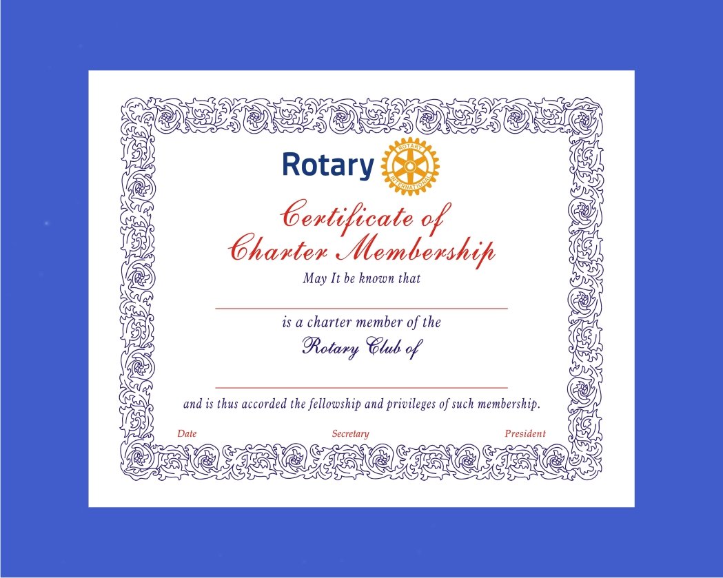 Certificate of Charter Membership given by the club to its
