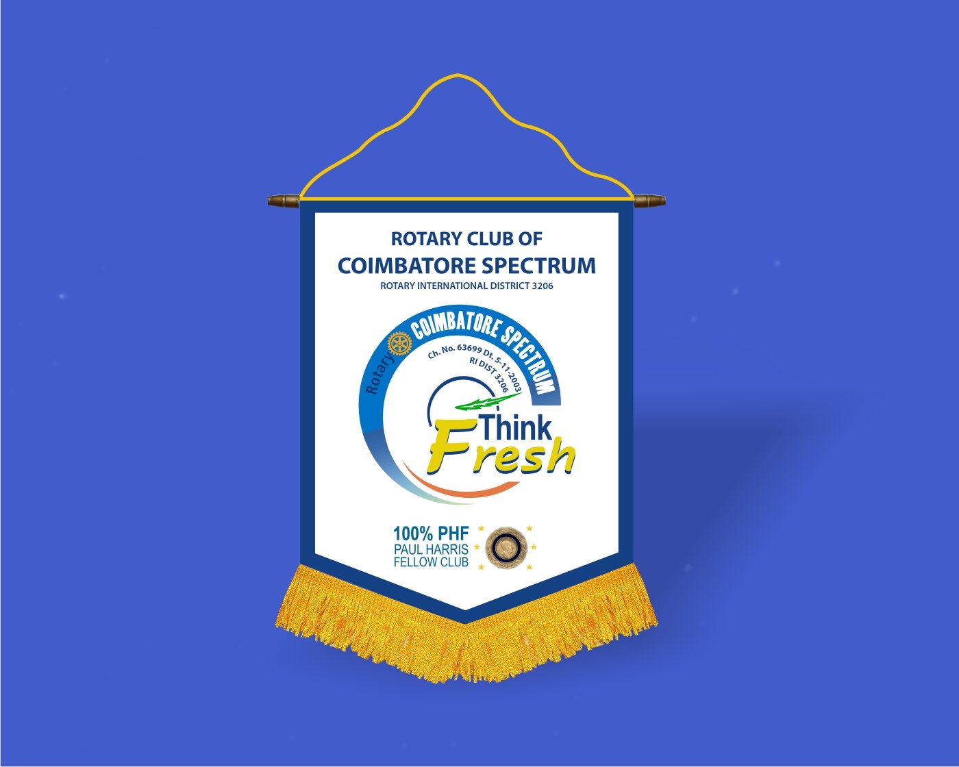 As per the tradition in the Rotary if any member or team visits another clubs or district usually they carry their Club Flags and Exchange them or give away to another clubs or district they visit. You can gave any famous monument nearby your club area or place or your club logo if any with the club name and district no etc. in this banner..